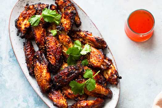 Miljuschka heeft een leuk en snel recept met sticky chicken waarbij je kipborrelboutjes gebruikt. Je bakt ze op 180˚C in 15 minuten tot ze goudbruin en krokant zijn.